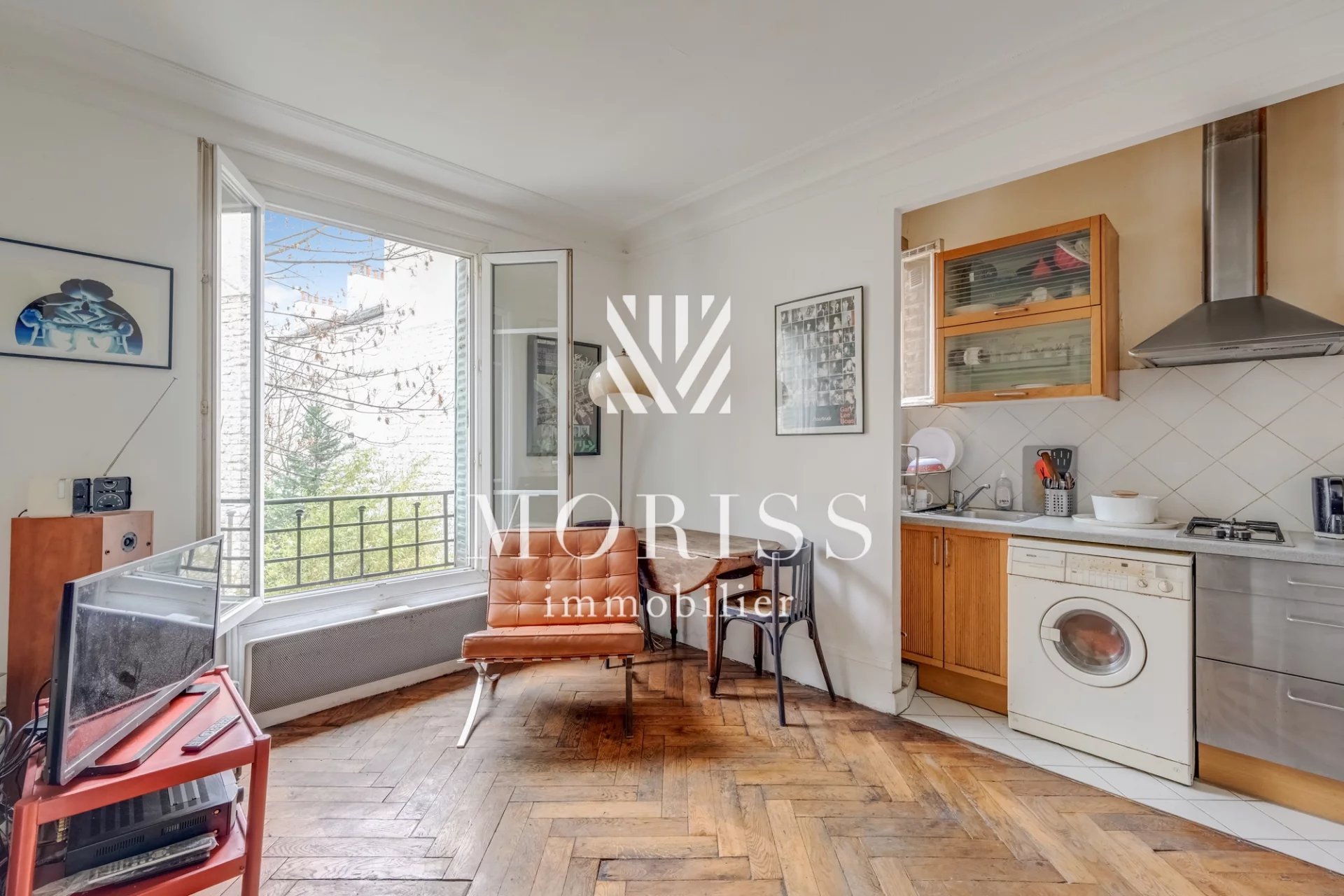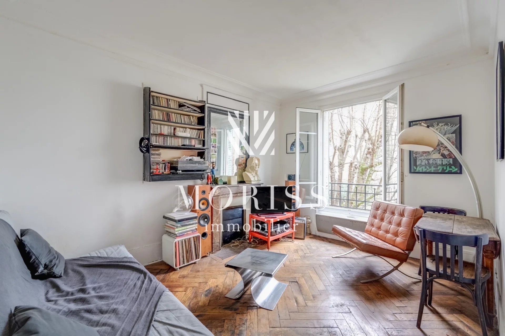 APPARTEMENT - 2 pièces 39 m2 - 75011 Rue de Charonne Moriss Immobilier vous propose en exclusivité ce charmant appartement deux pièces traversant au 3ème étage avec ascenseur situé à proximité des métro Alexandre Dumas et Rue des Boulets il se trouve au sein d'une belle copropriété ancienne bien entretenue disposant d'un local vélo. L'appartement se compose d'une entrée, d'une cuisine ouverte sur séjour lumineux sans vis à vis exposée Sud/Sud Est au calme absolu donnant sur un bel espace verdoyant, une généreuse chambre avec dressing indépendant et une salle d'eau avec WC. Vous serez séduit le charme de l'ancien avec ces moulures, ces cheminées et son parquet en bâton rompu en chêne.