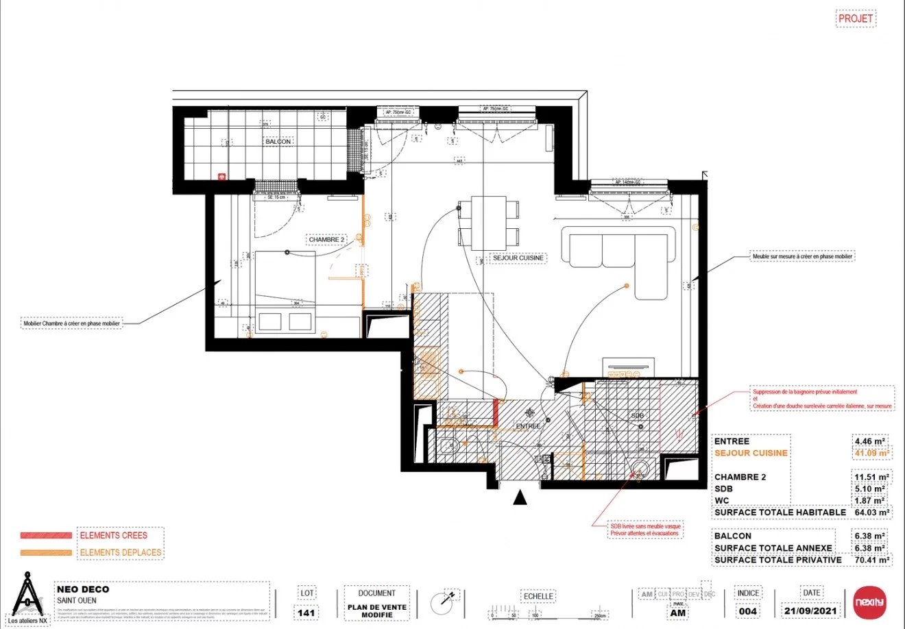 67 m² Nombre de pièces :