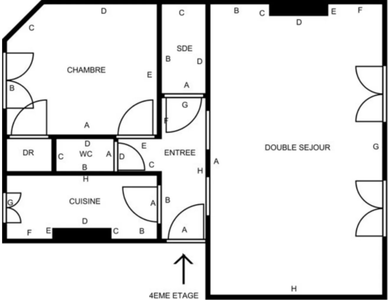 55 m² Nombre de pièces :