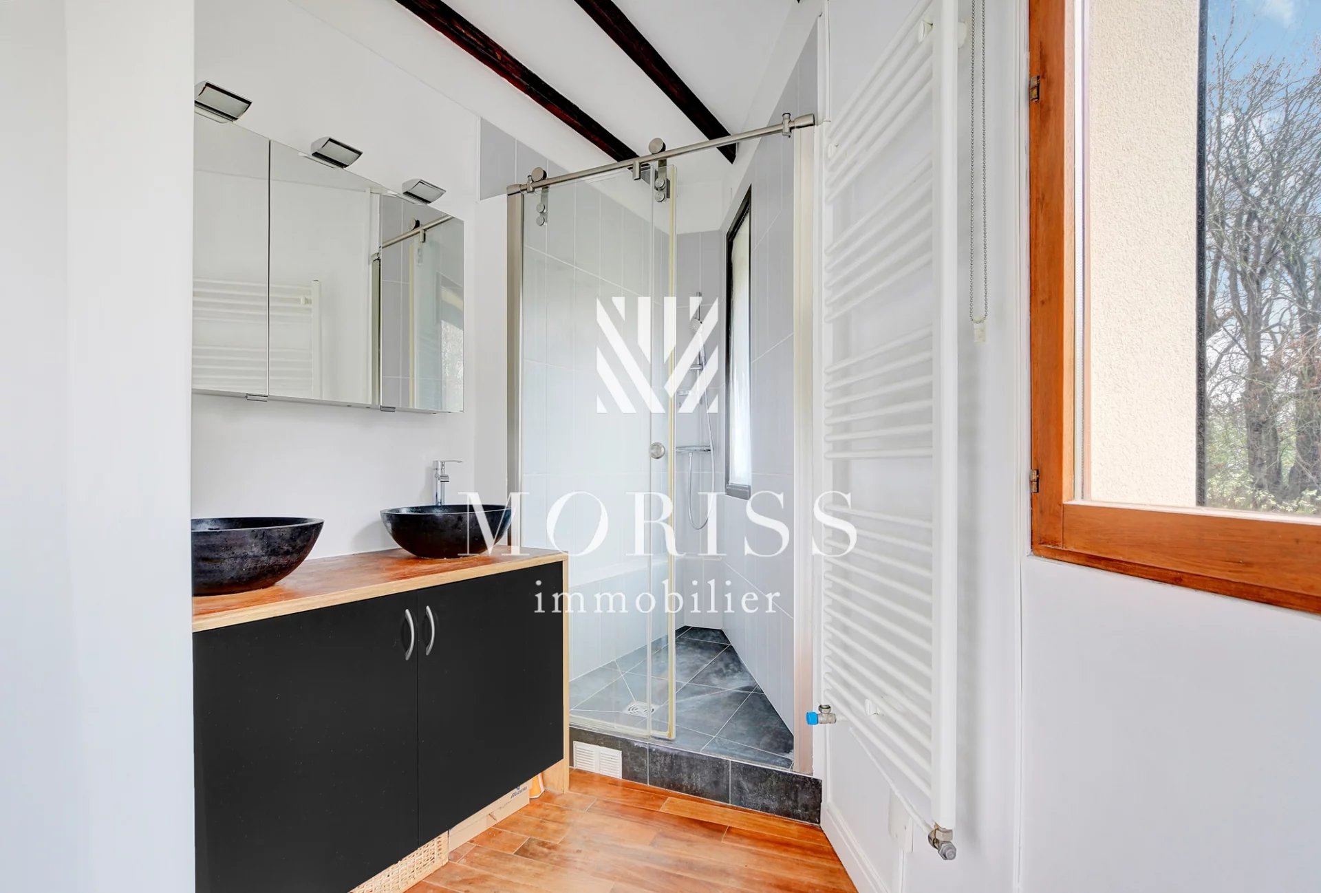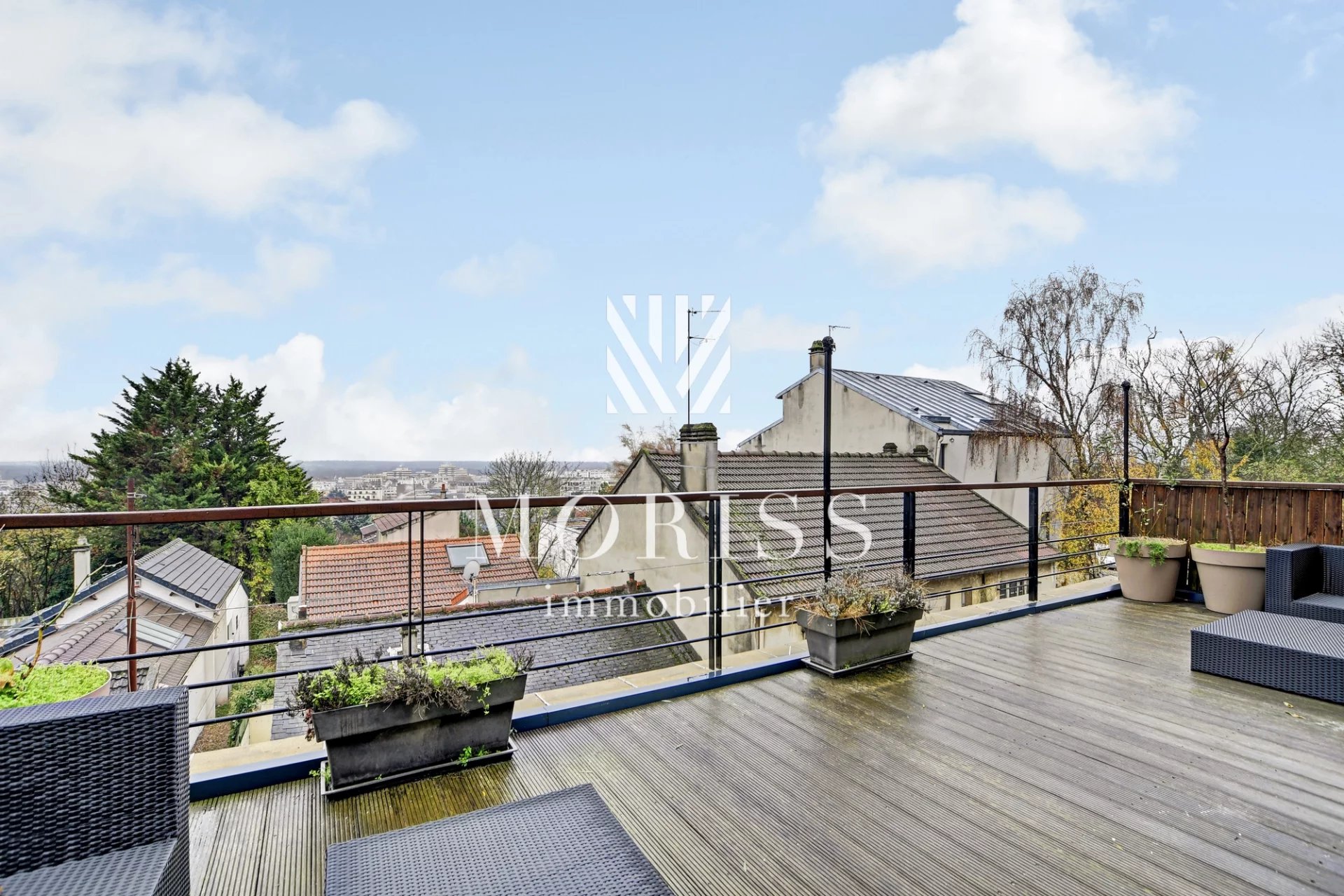 PARC DES BEAUMONTS - MAISON ATYPIQUE ET LUMINEUSE DE 6 PIECES AVEC JARDIN, TERRASSES ET GARAGE. FONTENAY-SOUS-BOIS EN LIMITE DE MONTREUIL, AU PIED DU PARC DES BEAUMONTS, MAISON FAMILIALE ATYPIQUE DE 169,28 M2 HABITABLES SUR 3 NIVEAUX + COMBLES AMÉNAGÉS AVEC JARDIN DE 50 M2 ET TERRASSES PLEIN SUD.