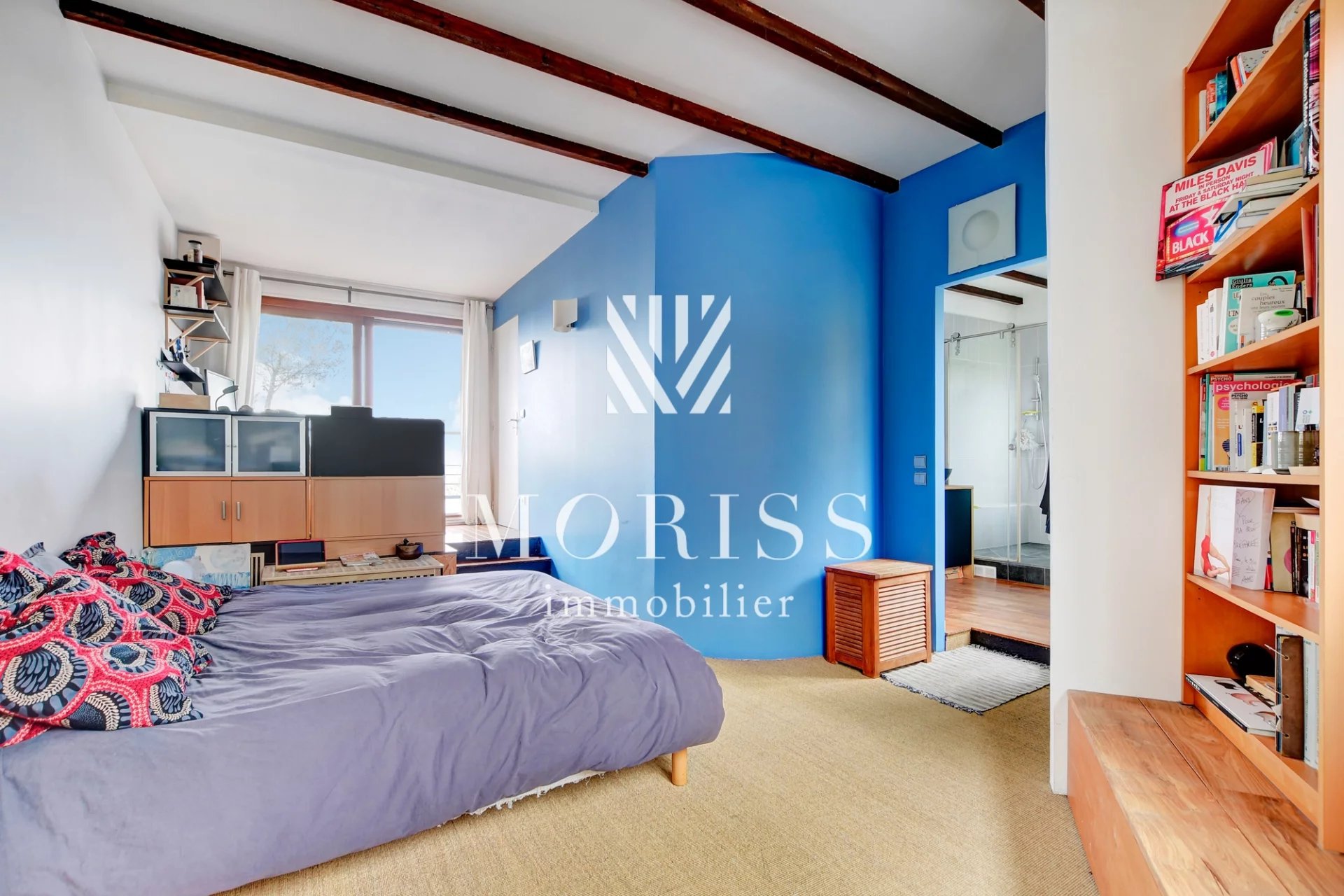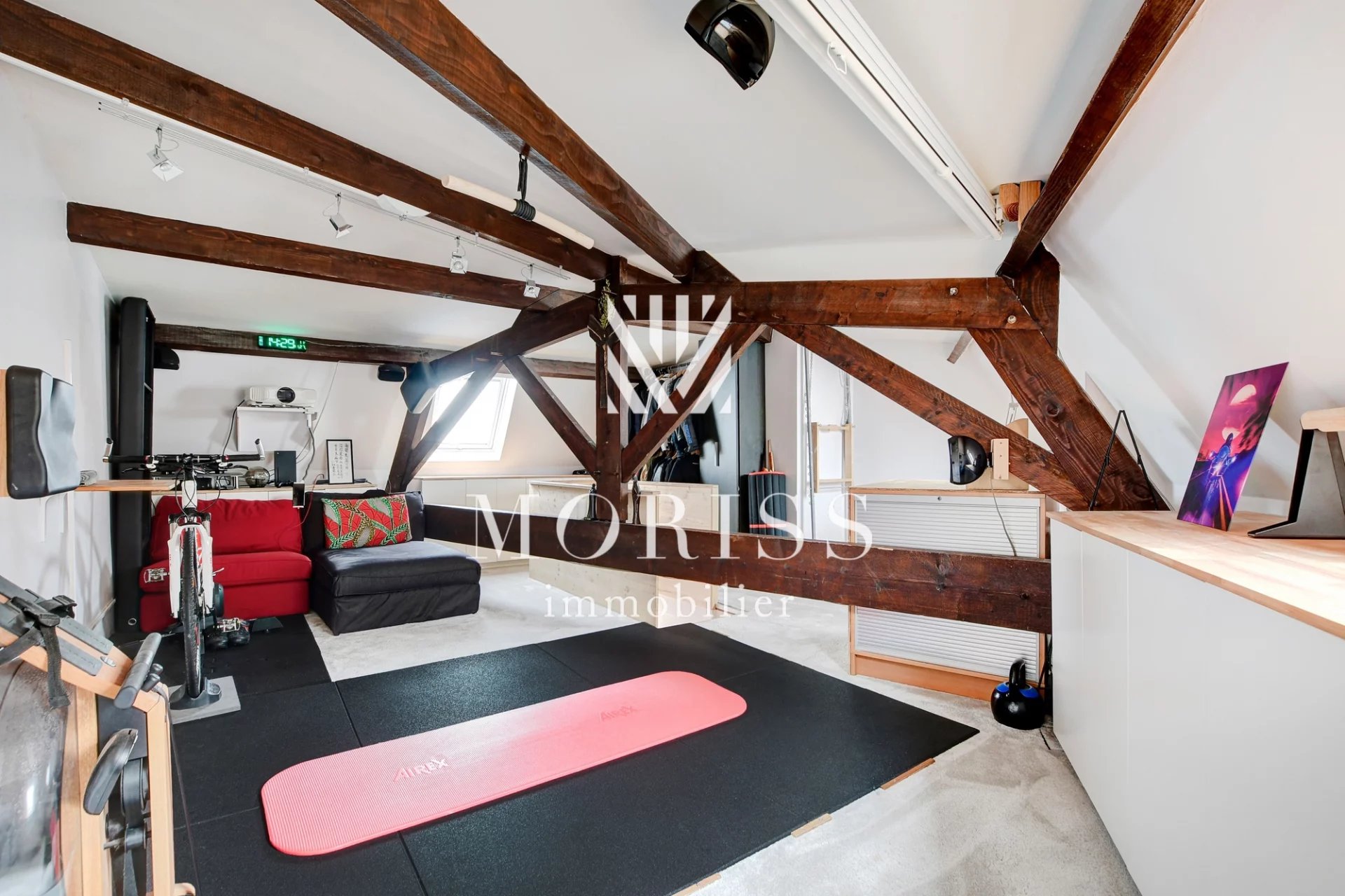 AU TROISIÈME NIVEAU, LE PALIER DISTRIBUE 2 CHAMBRES AVEC ACCÈS À LA TERRASSE PLEIN CIEL DE 28,37 M2 ET SA VUE DÉGAGÉE, LA CHAMBRE PARENTALE FAIT PLUS DE 20 M2 ET LA SECONDE CHAMBRE DE CE NIVEAU EST DOTÉE D'UN ESPACE NUIT EN MEZZANINE (8,14 M2 + 6,06 M2), UNE SALLE D'EAU, ENFIN SOUS LES COMBLES UNE SALLE DE SPORT / SALON MÉDIA (CHAMBRE OU AUTRE) AVEC VELUX ET NOMBREUX RANGEMENTS.