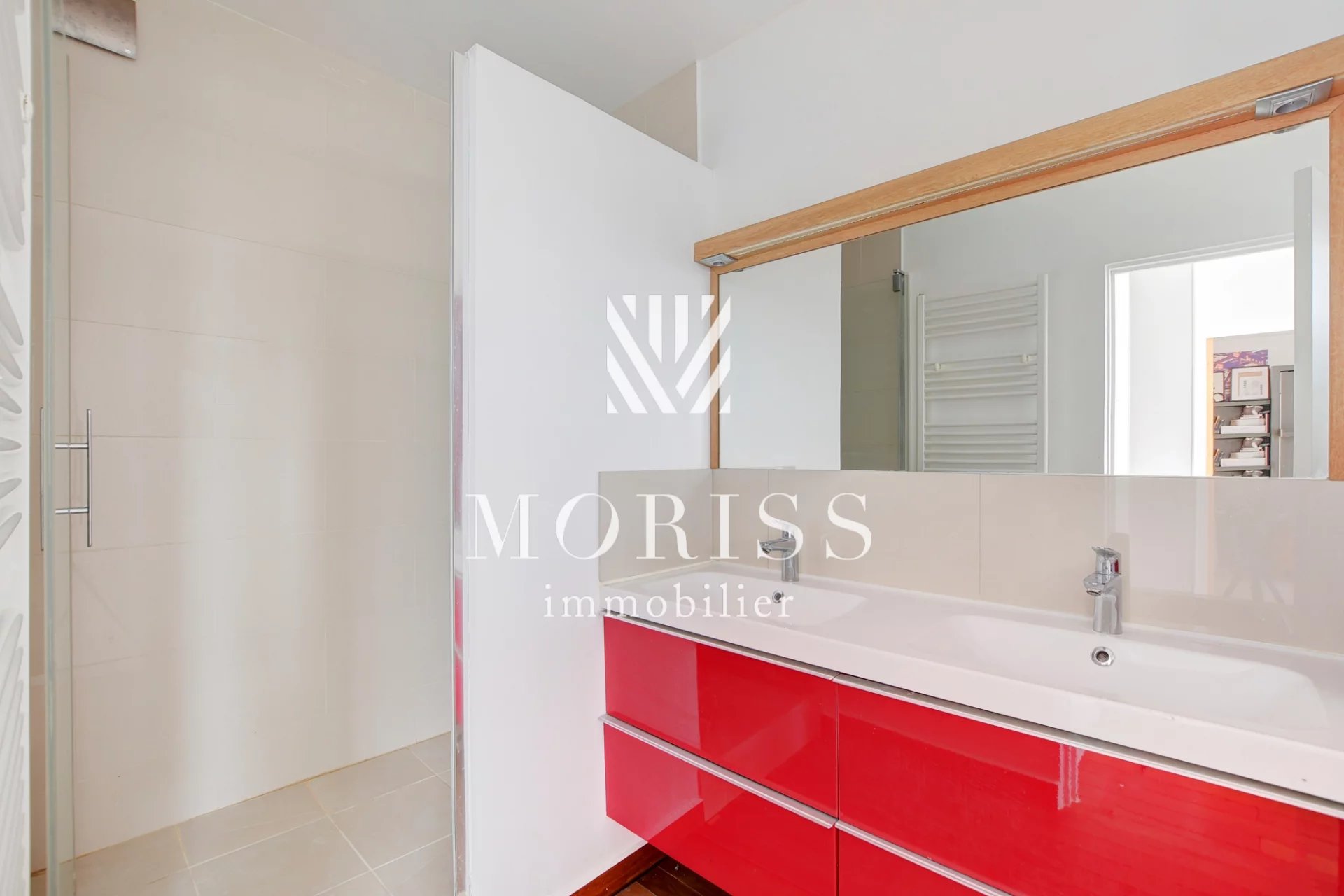 AU SECOND NIVEAU, LE PALIER DISTRIBUE DEUX CHAMBRES, UNE SALLE D'EAU AVEC DOUBLE VASQUES ET FENÊTRES, DES WC SÉPARÉS,